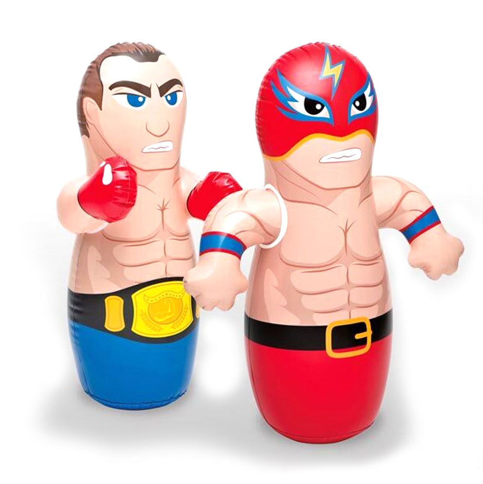3D Bop bags Intex inflatable Boxer designed for indoor and outdoor use. Punching dummy retains its stability due to water stress at the bottom of this toy. It is intended only to solid surfaces. Intsructions and Specs: