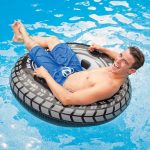 Step into the water and step into bliss with this inflatable Giant Tire Tube. It is large, thirty-six inches, and made from sturdy, double-valve, vinyl. The generous size will let you really get comfortable and stretch out, and the sporty design will help you do it in style. Sized for adults.