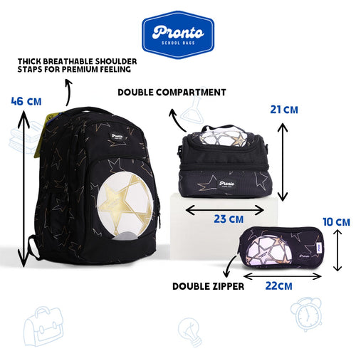 Bring the energy of the game to school with the Pronto Football Stars Backpack Set. Designed for Grades 1–3, this 3-piece set is perfect for young...