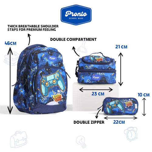 Level up your school day with the Pronto Game On Backpack Set. Perfect for Grades 3 and up, this 18-inch backpack delivers comfort, durability, and a...