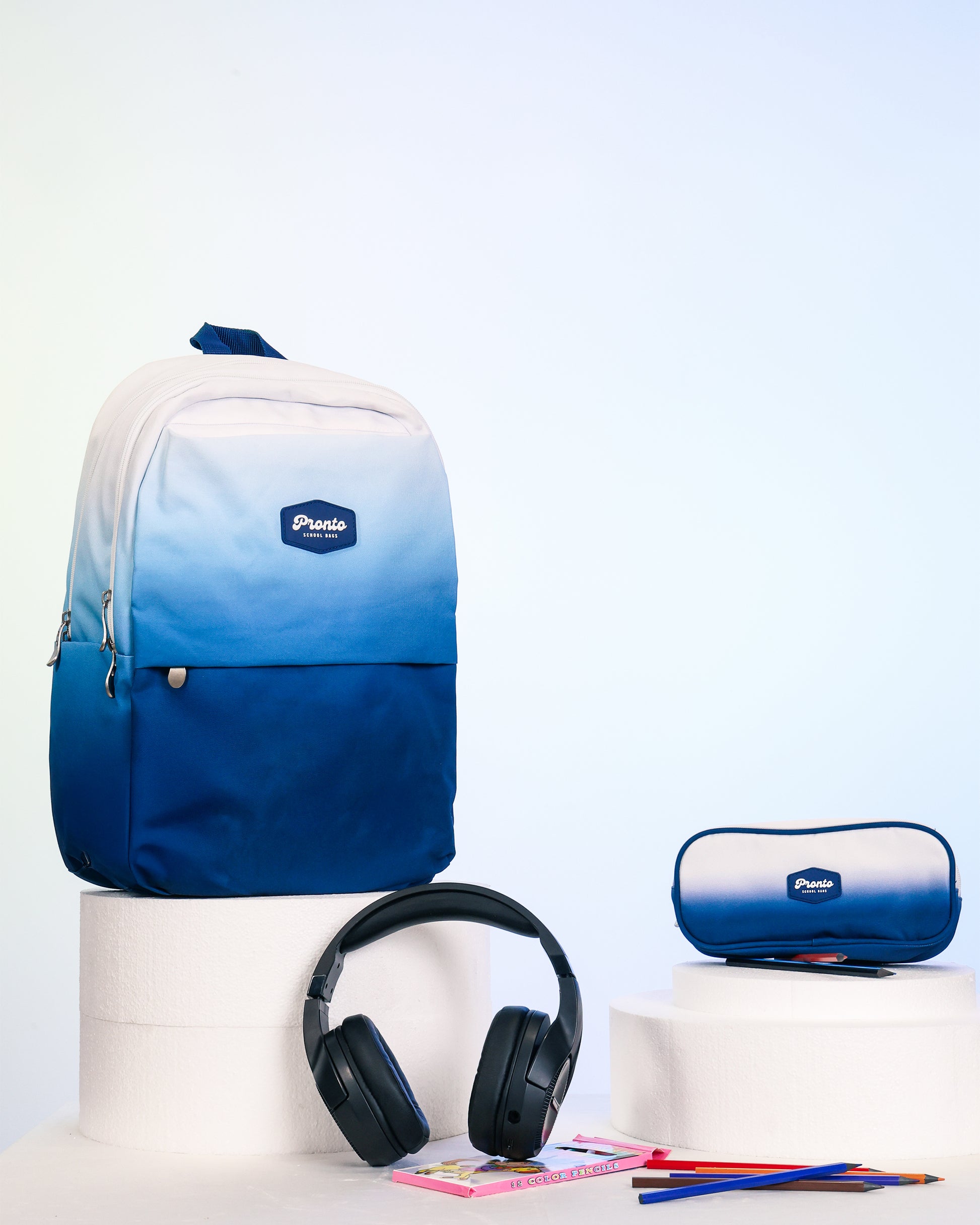 Fresh, modern, and practical—the Pronto Ocean Fade 18” Backpack Set is designed for older students and even university life. With its smooth blue-to-white gradient design, this ergonomic set combines comfort, durability, and minimalist style.