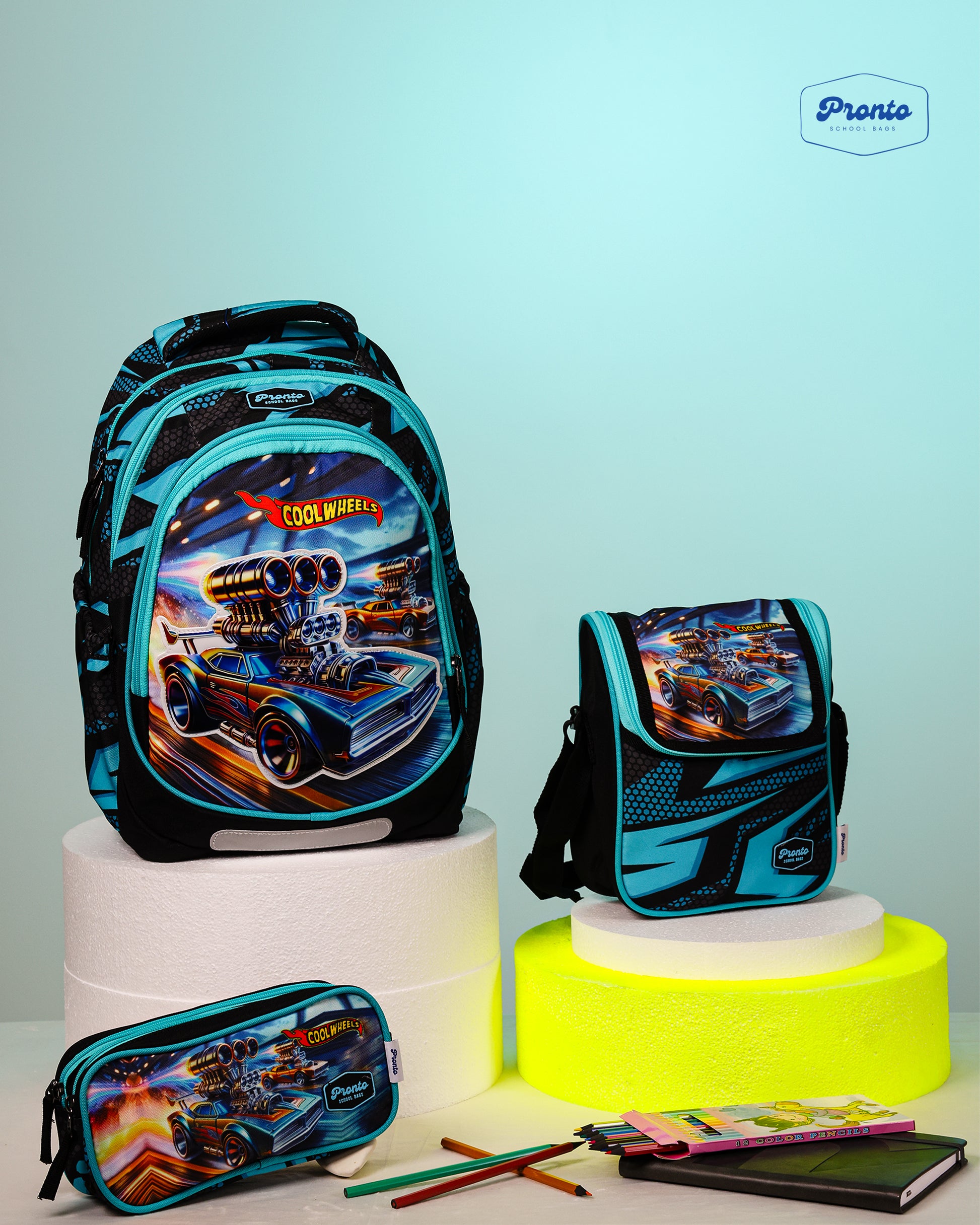 Race into the school year with the Pronto Cool Wheels 3-in-1 School Set. Designed with a bold racing car theme and neon accents, this ergonomic set is built for comfort, durability, and excitement—perfect for young speed lovers.