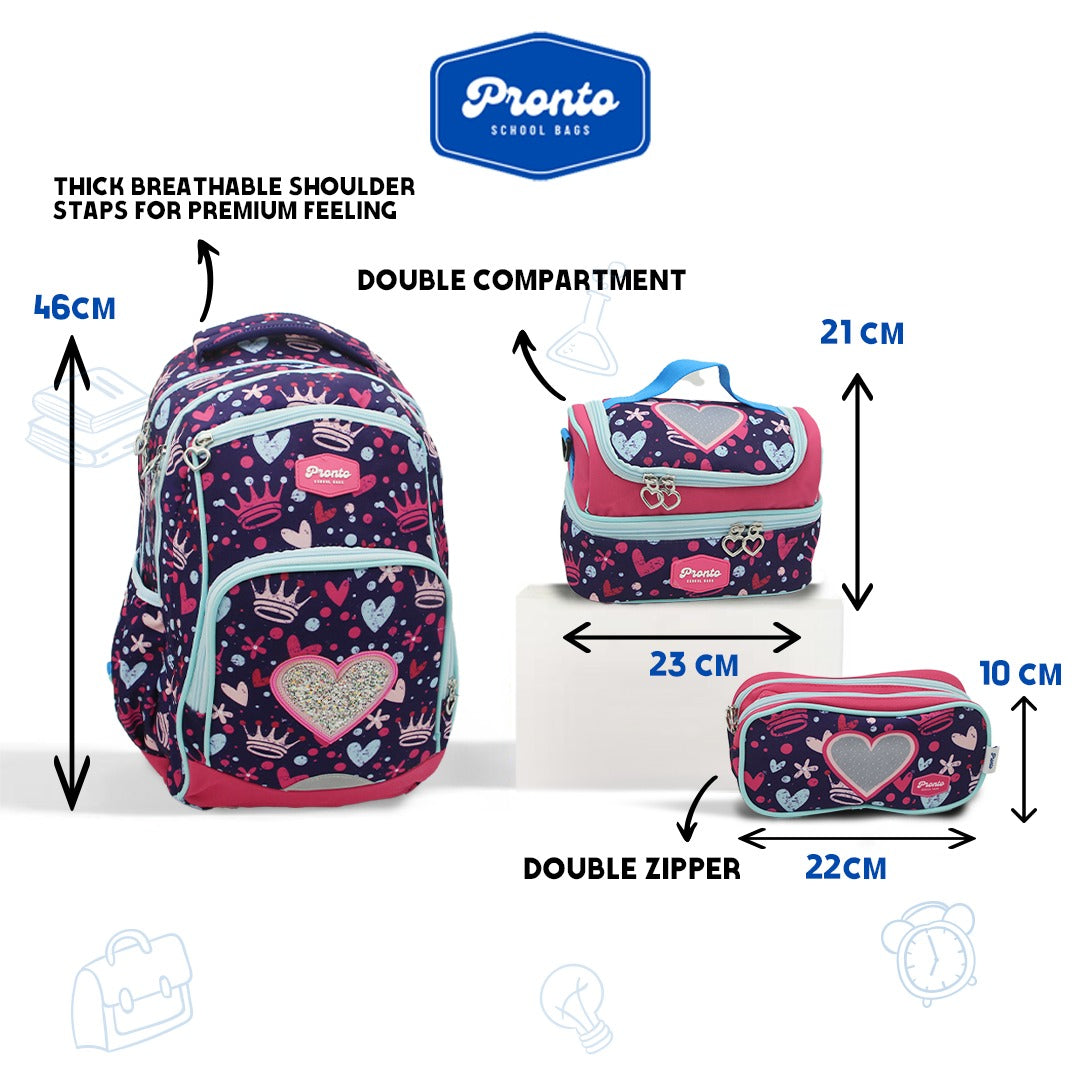 Pronto Glitter Heart Backpack Set 18”
